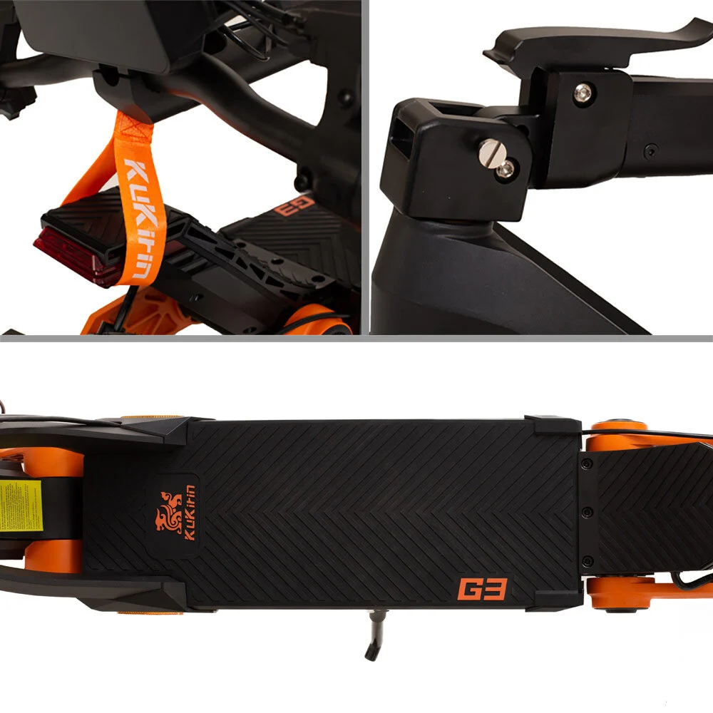 | Pagrindinė specifikacija | Vairo ilgis: 660 mm Pagrindo aukštis (virš žemės): 180 mm Padėklos dydis: 220mm*475mm Maks. Apkrova: 120kg Atsparumo vandeniui lygis: IPX4 Rėmo medžiaga: aliuminio lydinys Greitis: 25km/h, 35km/h, 50km/h Stabdžių sistema: priekiniai ir galiniai diskiniai stabdžiai + EBS Įkalnė: 30° Maks. Diapazonas: 70 km Stabdymo kelias: ≤4m Maks. Greitis: 50 km/h Maks. Tuščiosios eigos greitis: 60 km/h Nominali galia ir įtampa: 1200W, 52V Maks. Momentinė galia: ≥ 1000 W (iki 25 A ribos) Maks. RPM: 1000 aps./min Maks. Išėjimo sukimo momentas: ≥25 N.m (iki 25 A ribos) Greitėjimo režimas: sinusinė banga Tipas: vientisas stebulės variklis Baterija: 52V 18Ah, 936Wh Įkrovimo laikas: 8-10h Priekinis žibintas: LED priekinis žibintas Padanga: 10,5 colio, pneumatinė, guminė padanga Stabdžiai: diskiniai stabdžiai Ekranas: LED jutiklinis ekranas APP: G3, MINI2 |